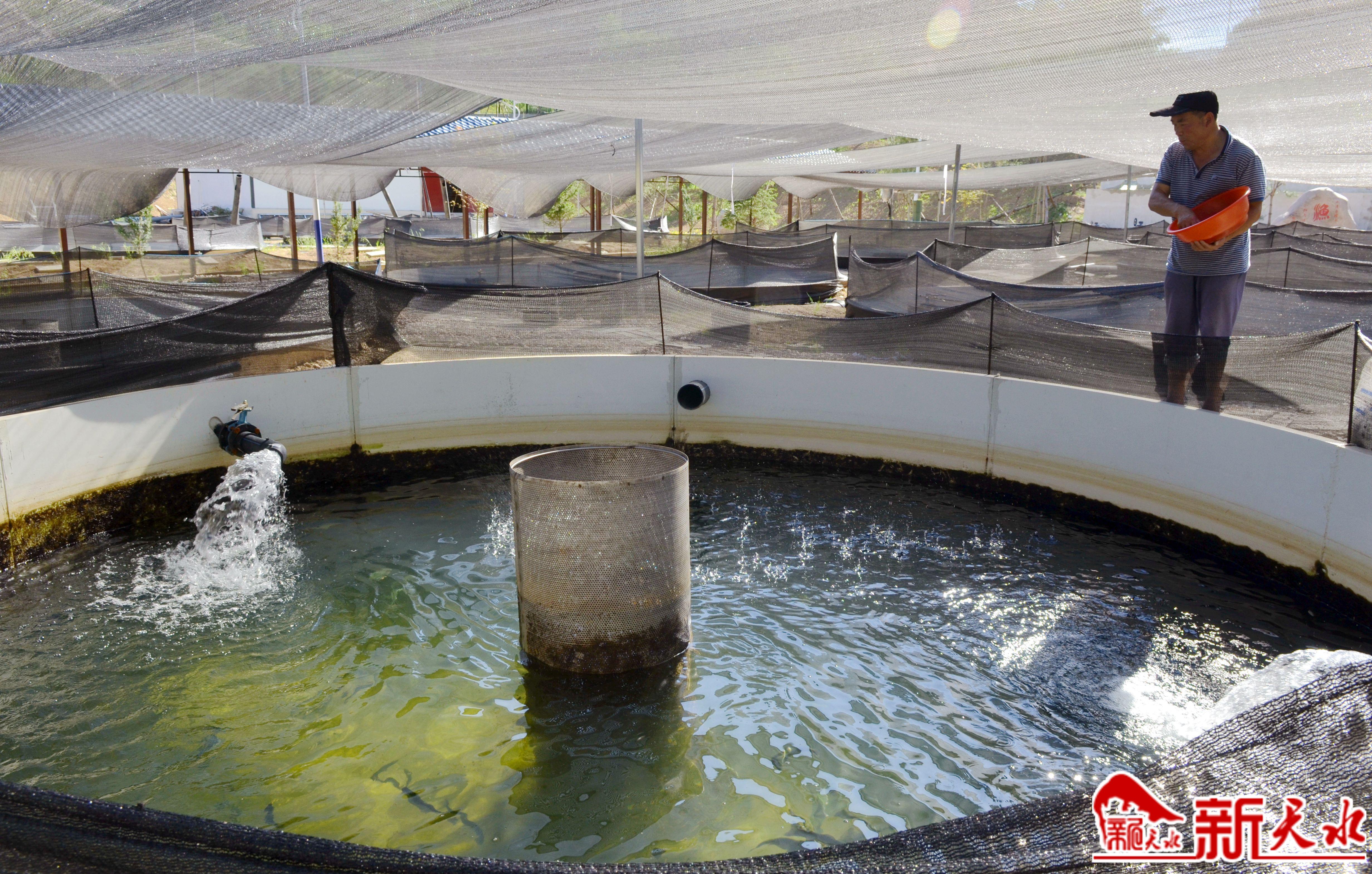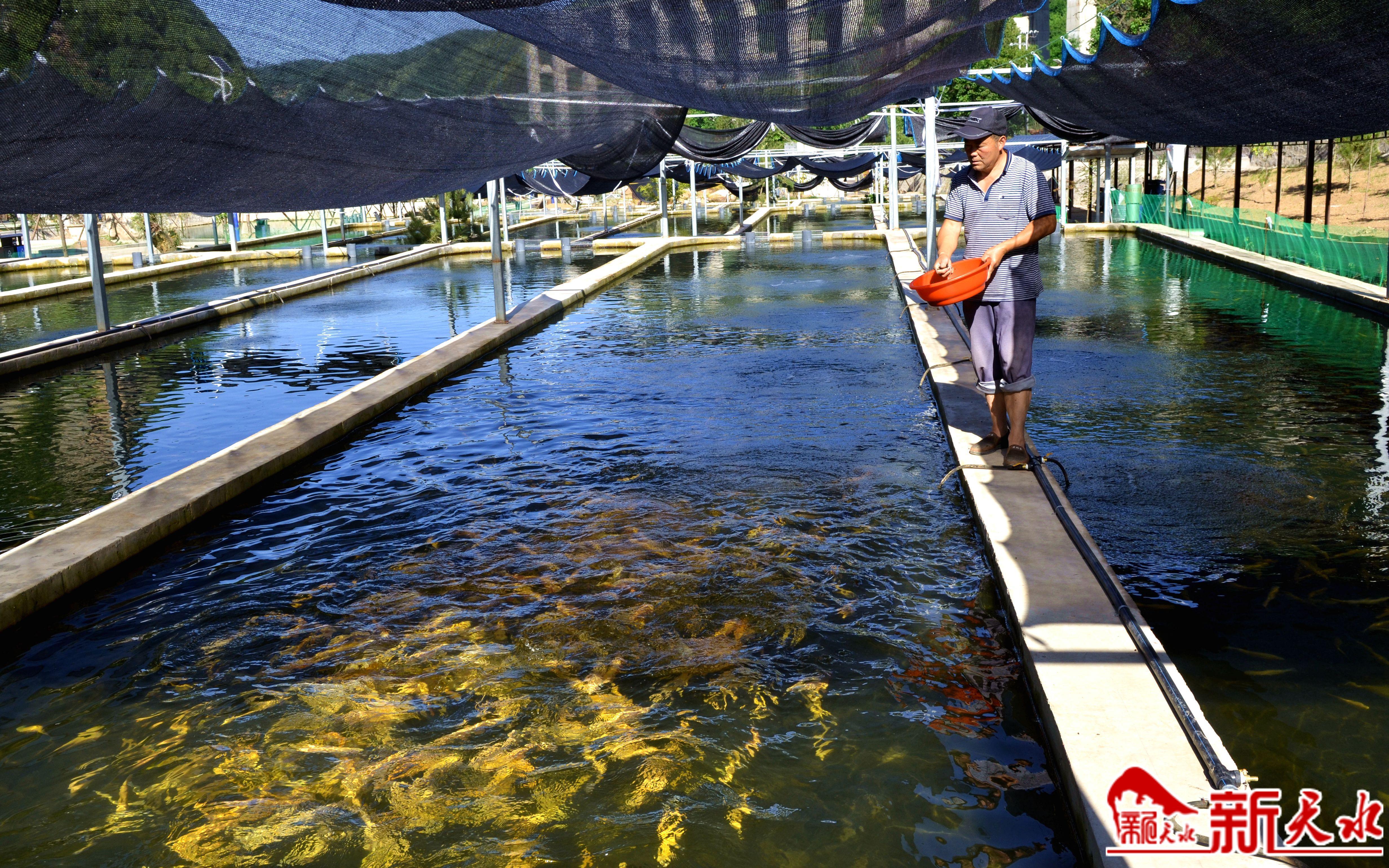 盛夏时节,麦积区东岔镇交川河冷水鱼养殖基地的鱼儿欢快地游在碧水中,这些鱼群在阳光的照射下光彩夺目。投放鱼食的技术员抛撒出饲料时,鱼儿竞相跃出水面,一幅鱼群欢跃产业兴的景象。