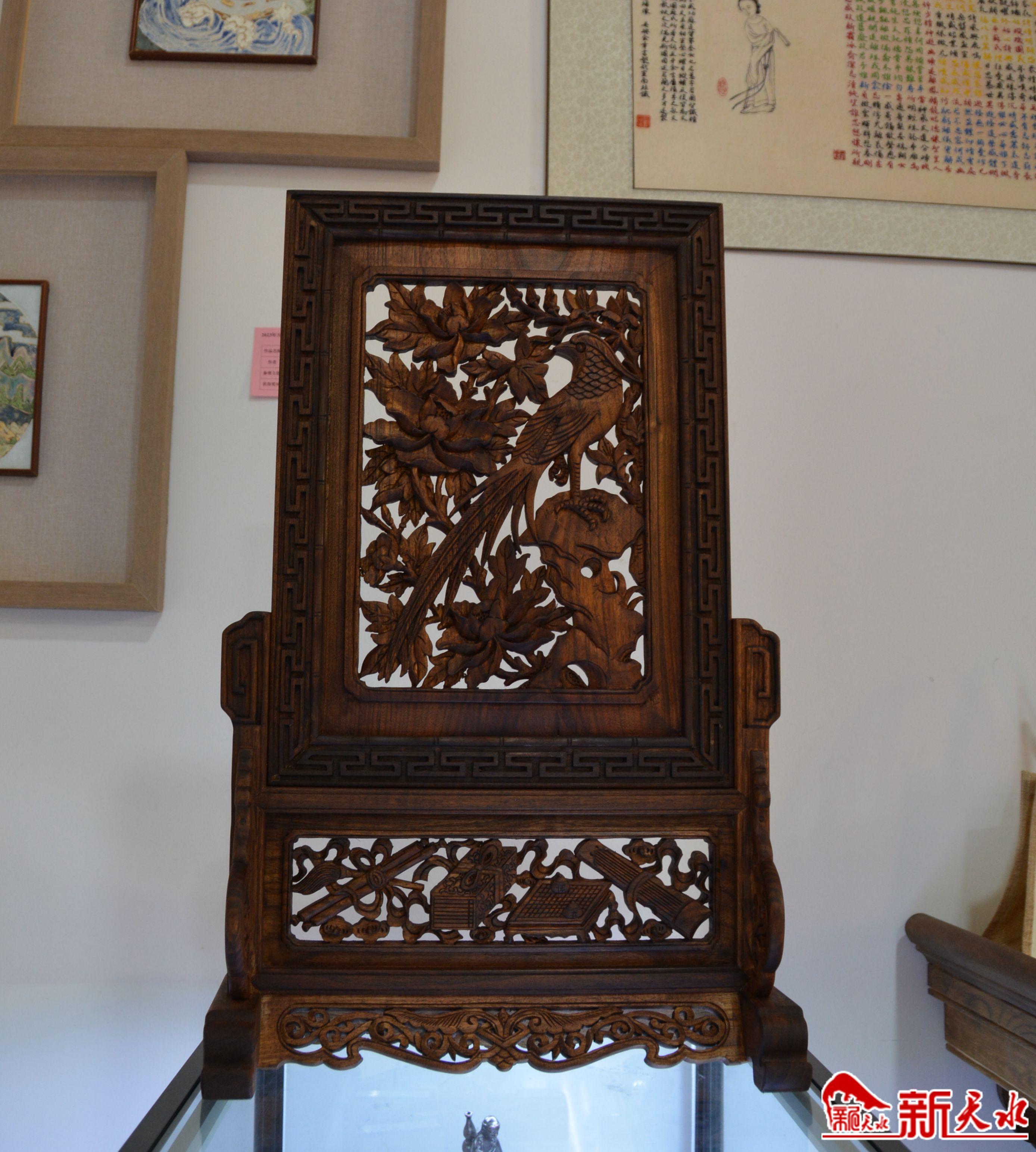 在展销现场,由天水飞天雕漆创作的作品《樽瓶》受到了广泛关注。“这个作品属于贴金犀皮漆工艺,瓶子是按照战国时期的出土文物樽演变成瓶形,瓶体采用脱胎制造,上面的图案出自天水出土的文物凤壶。”天水飞天雕漆工艺家具有限责任公司副总经理张晓军说,这件作品由3名工艺师经4个多月制作而成,此次参展也是首次亮相。