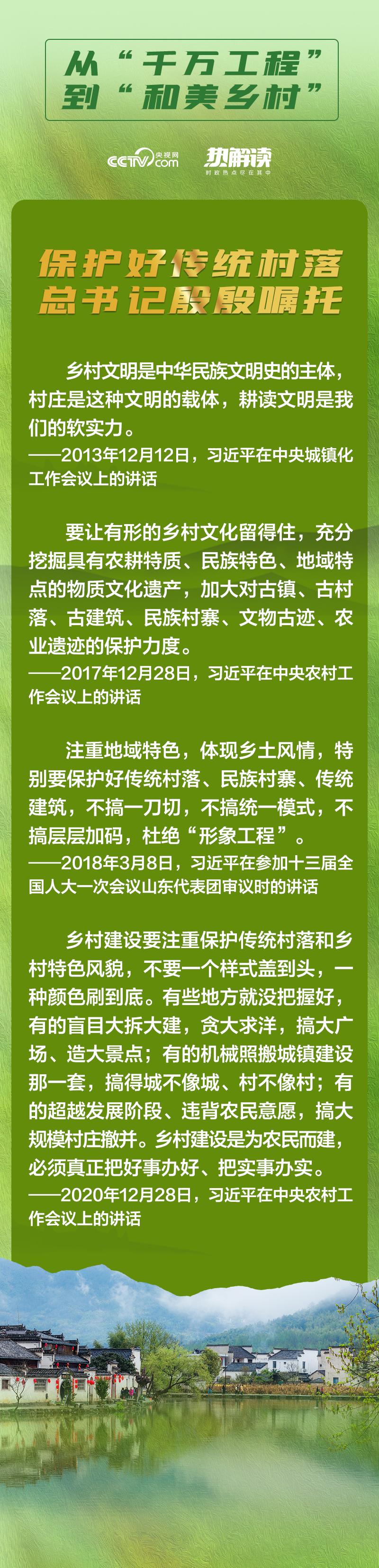 热解读“注意乡土味道,保留乡村风貌,留得住青山绿水,记得住乡愁”,只有保护好传统村落,才能留住乡村的韵味。