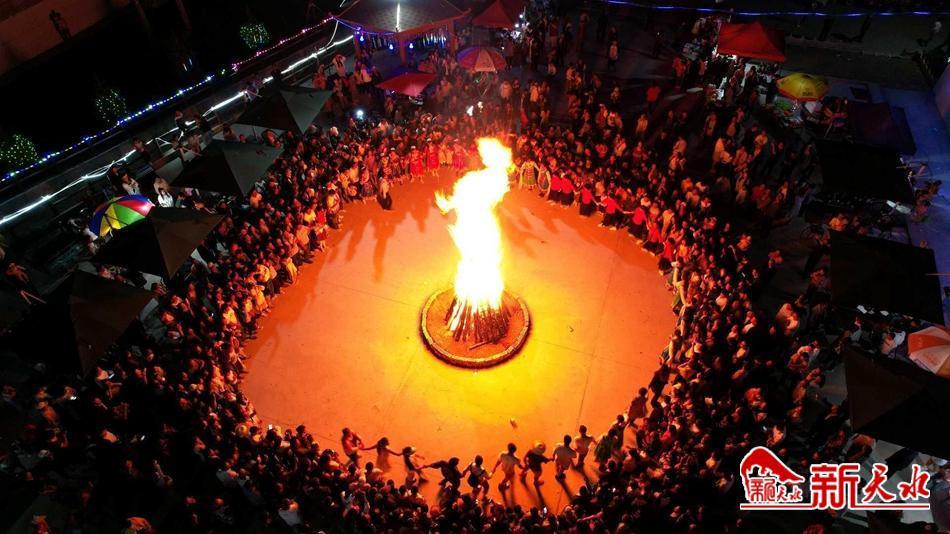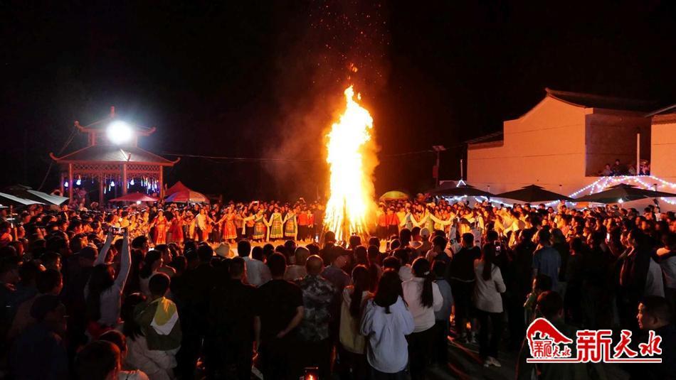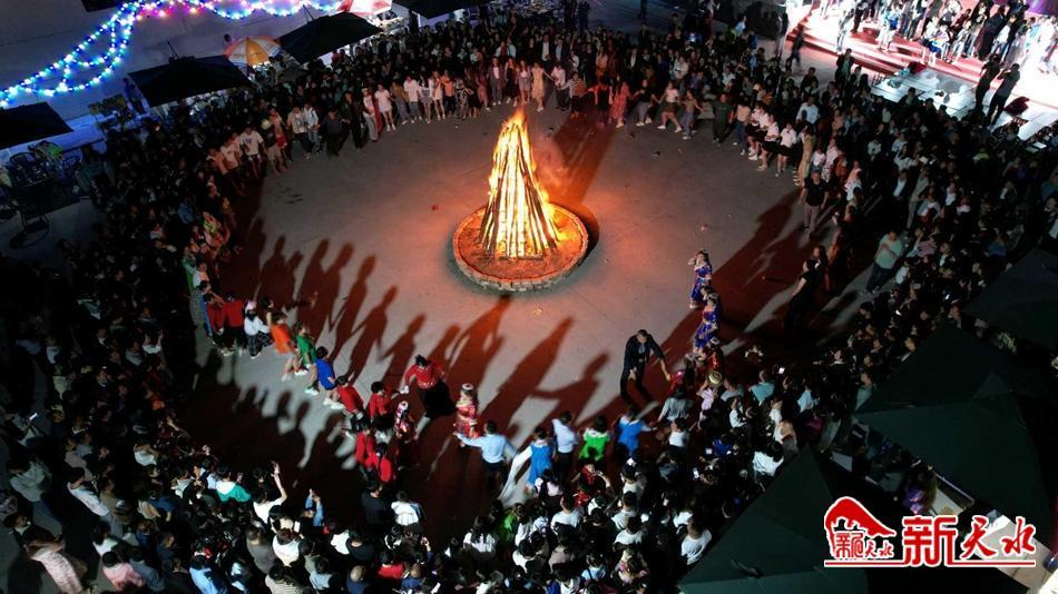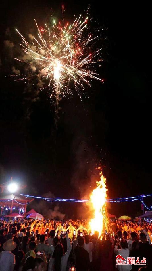 晚上10点,节目演出完毕,广场中央2米多高的火堆点燃,围绕熊熊篝火,人们翩翩起舞。