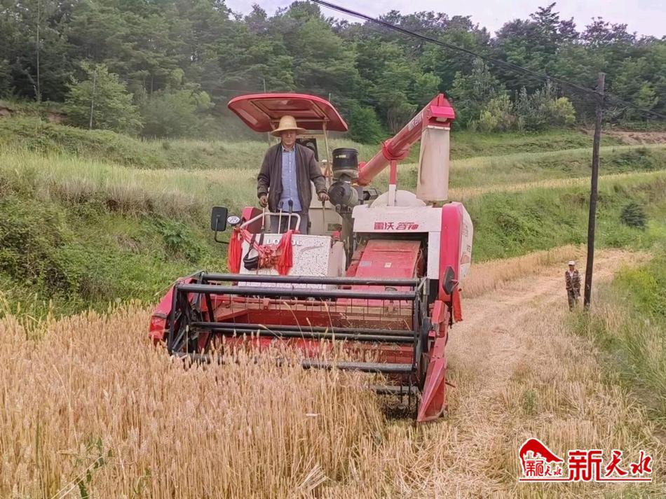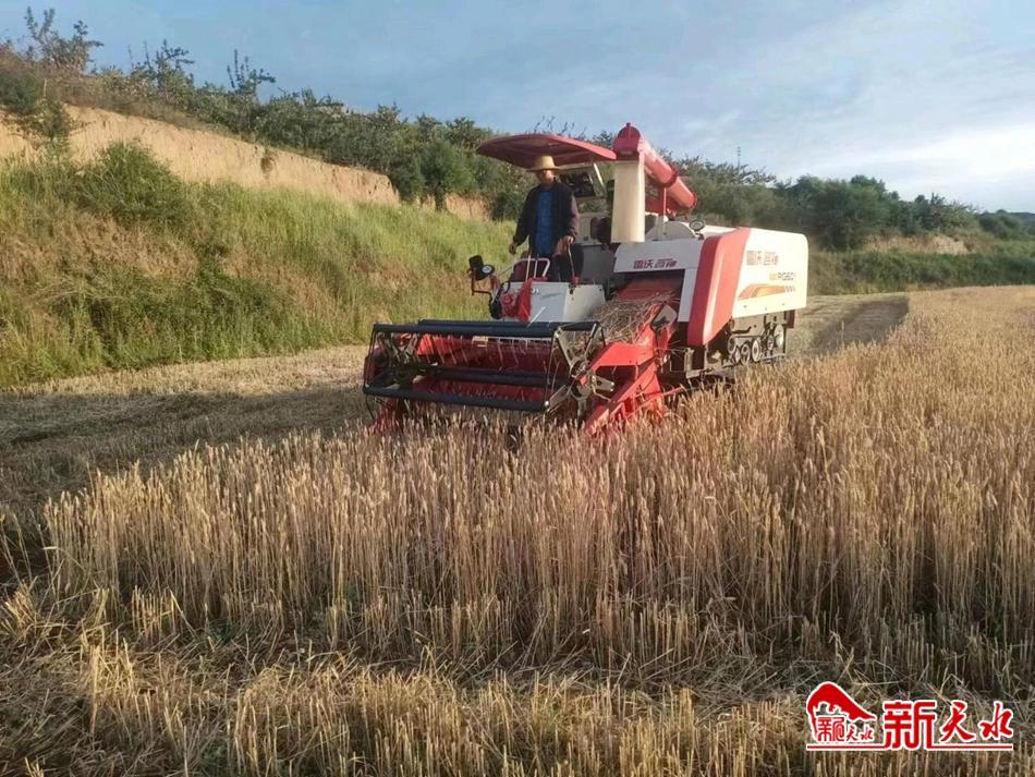 新天水讯【特约通讯员李晓兵】 风吹麦浪穗飘香,遍地金黄收割忙。眼下正值夏收农忙关键时期,秦安县莲花镇好地梁流域的500亩冬小麦陆续成熟,正式开镰收割。