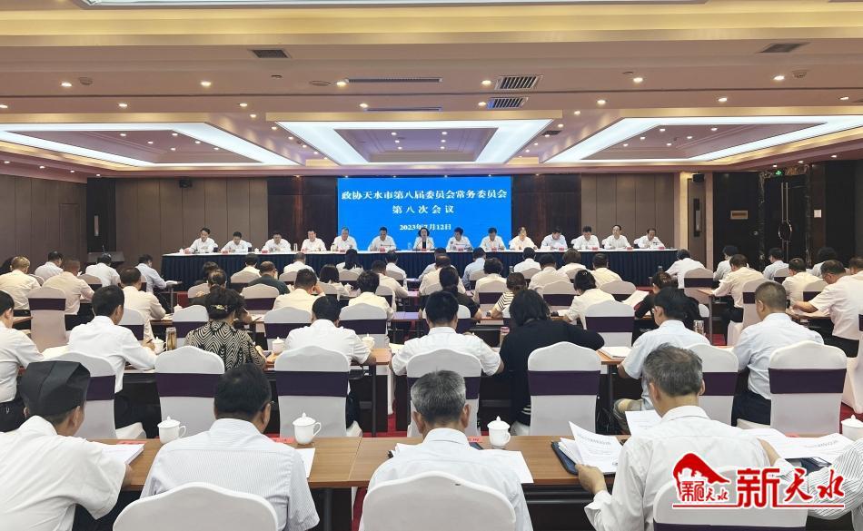 新天水讯【记者马哲】7月12日,市政协党组书记、主席王燕主持召开政协天水市第八届委员会常务委员会第八次会议。市委副书记、市政协党组副书记、市委统战部部长杨晓锋,市政府党组成员、副市长胡志勇应邀出席会议。市政协副主席马勤学、马筱宁、吴立新、崔玉军、何宝平、杨铁森、罗增芳、范多智,秘书长董小明,党组成员贾忠慧出席会议。市政协一级巡视员郭明兴列席会议。