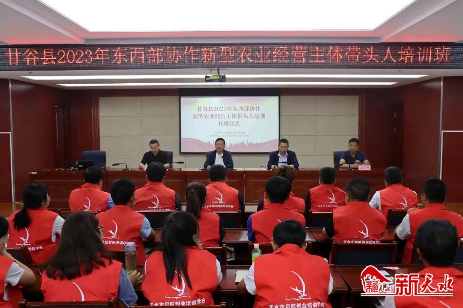 新天水讯【通讯员姚旭东】7月17日,由甘谷县乡村振兴局主办的2023年东西部协作新型农业经营主体带头人培训班开班,来自全县15个乡镇的150名新型农业经营主体带头人参加培训。