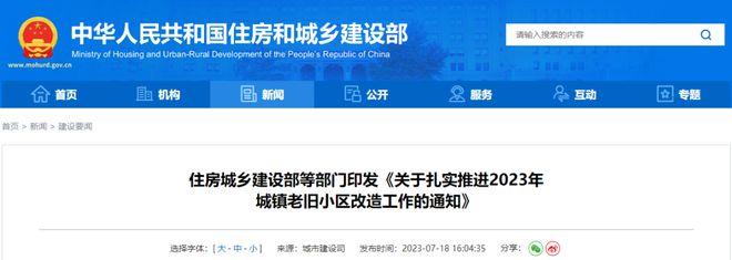 住建部等:扎实推进2023年城镇老旧小区改造工作