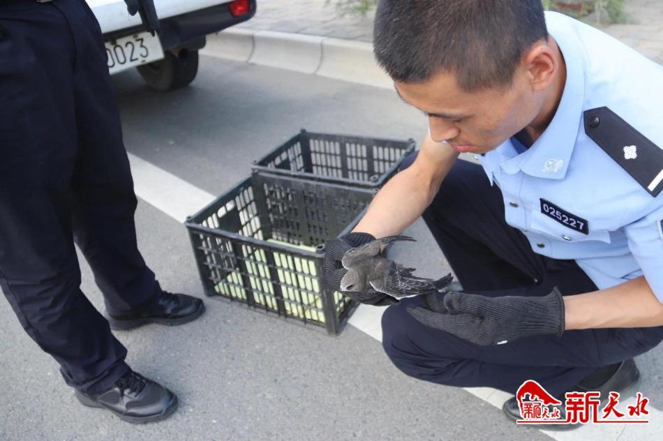 新天水讯【记者张彬霞】近年来,随着生态环境的日益改善,一些罕见的野生动物也越来越多地出现在人们的视野里。7月18日18时许,秦安县公安局森警大队接到指挥中心指令:有一热心群众报称,在秦安县兴国文化广场有一只受伤的小鸟,可能为野生动物,要求出警救助。