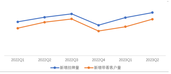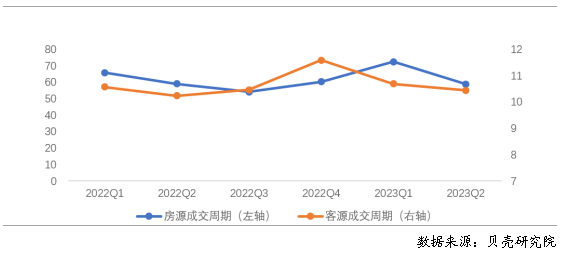 房客源活跃度提升,房屋出租周期先升后降。根据贝壳研究院数据,2023年上半年重点40城新增挂牌房源量、新增带看客户量同比、环比均增加超过9%。房源端、客源端活跃度均保持上升的趋势。2023年上半年重点40城房客源成交周期分别为65.0天、10.5天。相比于去年,今年上半年房源成交周期总体有所延长。从季度来看,房源供应量的增加同时使得2023年一季度房屋出租周期比2022年四季度上升12.1天,但2023年二季度房源成交周期比一季度缩短13.6天,出房速度有所加快。从客源端来看,一、二季度客源成交周期连续缩短,显示出租客的租房难度在降低,可选择房源量较多,有利于租客选择匹配自身需求的房源。