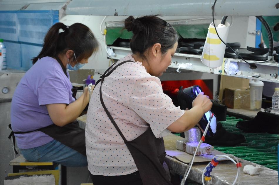 据李军孝介绍,目前公司有7条针车线,2条成型线,一个中心工厂和两个帮扶车间,年产量在100多万双,吸纳就业人数近500人。