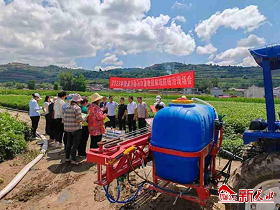 新天水讯 为做好马铃薯晚疫病预防控制,确保秋粮取得丰收,近日,张家川县农业农村局在张家川镇、马鹿镇、木河乡等马铃薯种植基地开展晚疫病防控技术培训和统防统治,农民专业合作社负责人、种植大户、村组负责人、农业农村综合服务中心负责人及部分群众代表等参加了防治现场会。