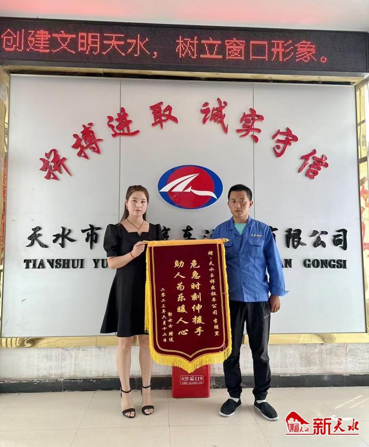 新天水讯【记者余碧波】近日,家住秦州区星光世纪城的一位乘客将一面写有“危急时刻伸援手,助人为乐暖人心”字样的锦旗送到天水市玉祥汽车运输有限公司驾驶员李朋里手中,感谢他在紧急时刻帮助家人的高尚行为。