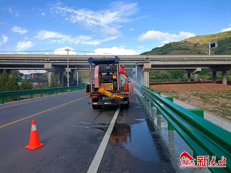 新天水讯【通讯员王小强 张晓文】连日来,张家川公路段干部职工头顶烈日,加班加点对G566线公路的交安设施进行全面清洗刷新。