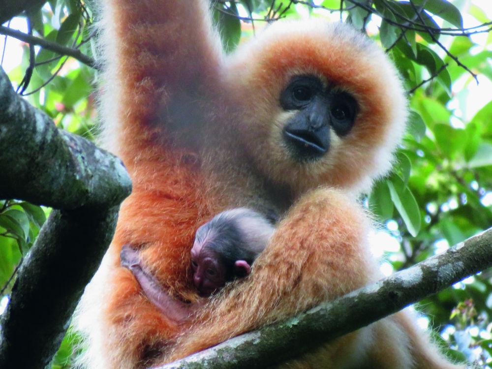 一只海南长臂猿在海南热带雨林国家公园内活动。