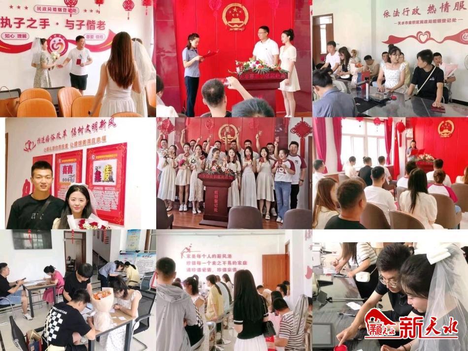 新天水讯 倡导婚事简办,树立婚俗新风。8月22日,麦积区民政局在婚姻登记处举办了一场新颖、喜庆的集体结婚颁证活动。