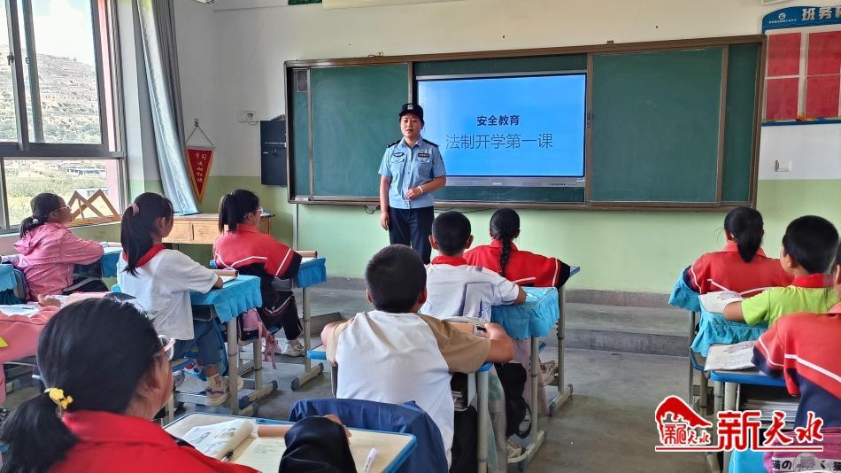 新天水讯【记者张彬霞】8月29日,秦安县公安局五营派出所民警利用开学之际,走进课堂,开展了内容丰富的“法治进校园”活动,以法治阳光照亮每位同学的青春成长之路。