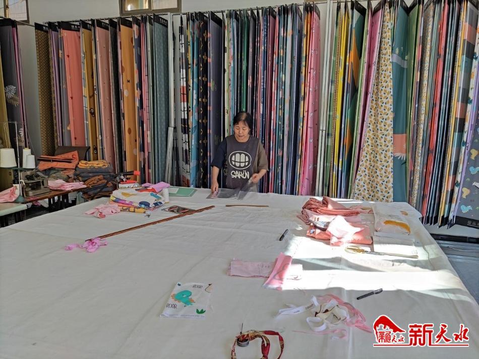 自爱心针线坊成立以来,李妈妈大多时间就在这里工作,小到缝扣、锁边、换拉链,大到做床单、被套,裁缝铺几乎什么活儿都接,穿针引线、布料裁剪、拼接缝合,每一道工序、每一个步骤她都认真完成,最大限度地满足群众所需。