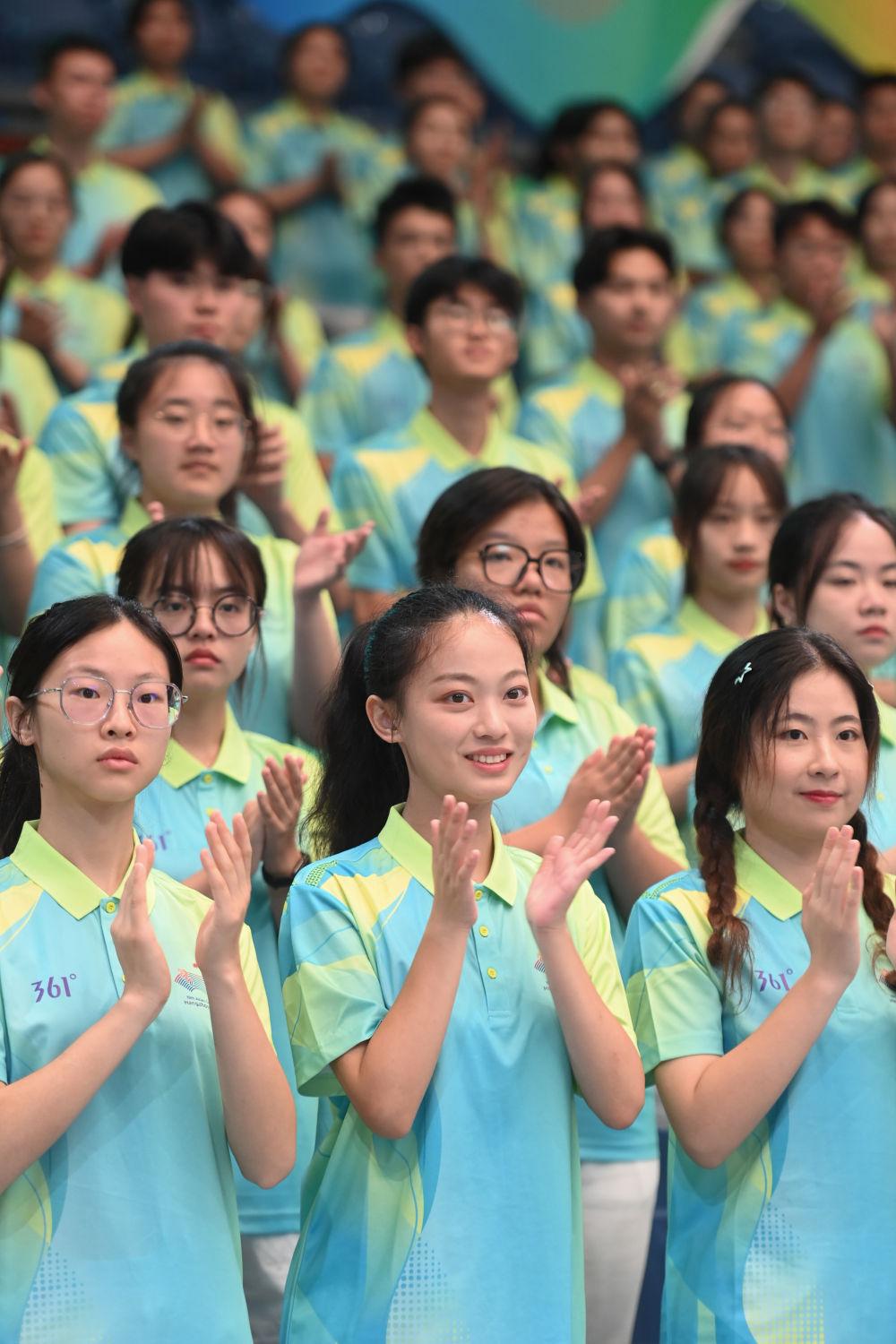 8月24日,在杭州亚运会倒计时30天之际,杭州亚运会、亚残运会赛会志愿者出征仪式在浙江大学紫金港校区体育馆举行。1800名赛会志愿者代表在现场向全世界发出邀约——“来吧,朋友!”