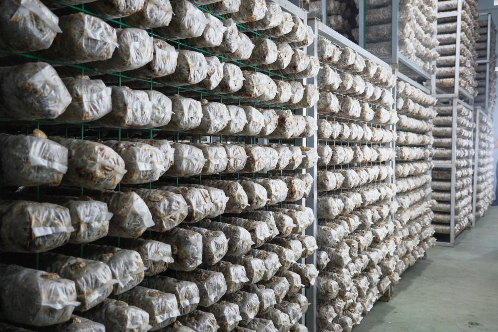 9月6日,德祥实业有限公司生产加工基地内,菌棒被培育在恒温培养室。新华社记者 赵鑫虎 摄