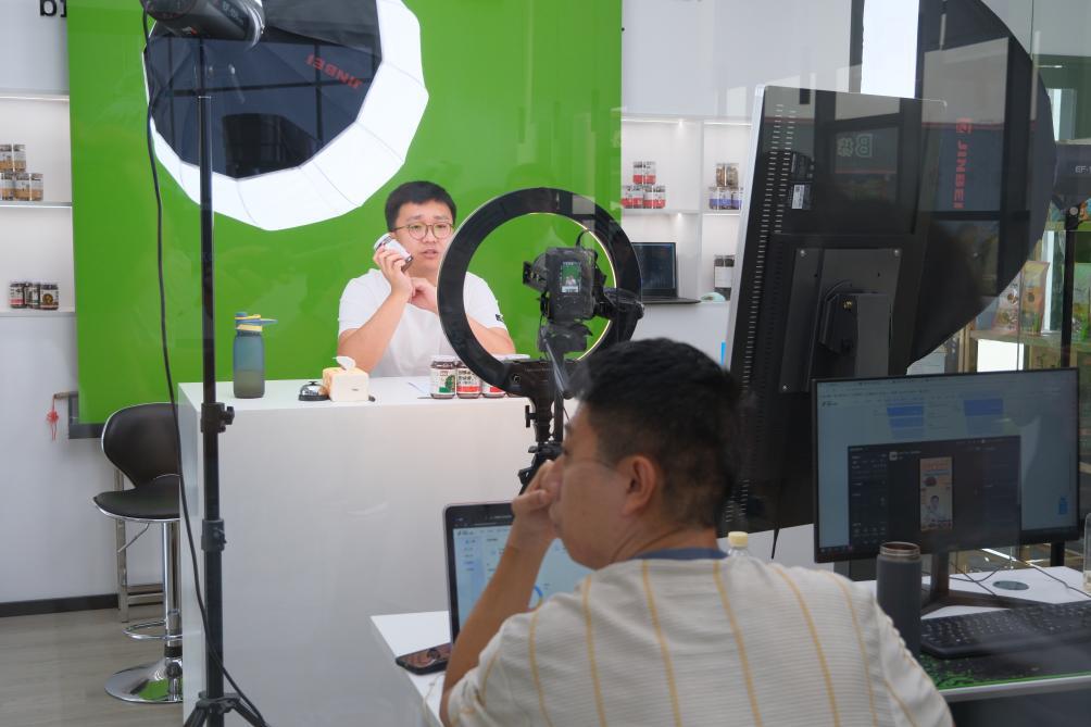 9月6日,销售人员正在德祥实业有限公司内进行电商直播。新华社记者 赵鑫虎 摄