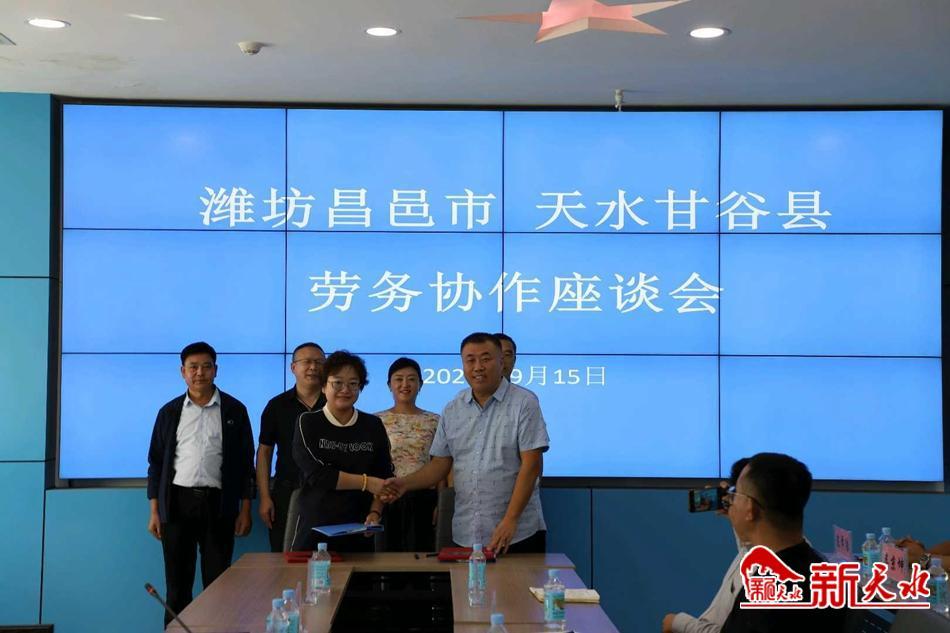 当天,召开了两地人力资源服务机构对接交流座谈会,甘谷县人社局对甘谷县基本情况、县域内人力资源服务机构工作开展情况和全县劳动力转移就业情况作了基本介绍,两地知名人力资源公司介绍了各自的优势并进行了互相交流。潍坊市考察团对甘谷县劳务工作表示了充分肯定。最后,双方秉持着“发展、合作、共赢”的原则签订了劳务协作框架协议,加强两地劳务合作,促进人员稳定就业。