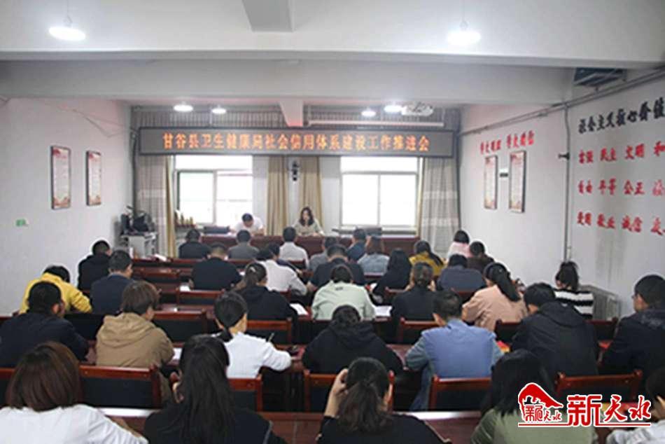 新天水讯【通讯员王峡弟】为加快推进全县卫生健康系统社会信用体系建设工作,近日,甘谷县卫健局组织召开信用体系建设工作推进会。局机关科级领导,全体干部职工参加了会议。