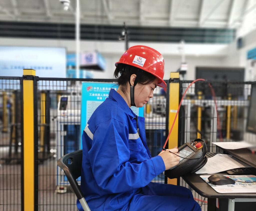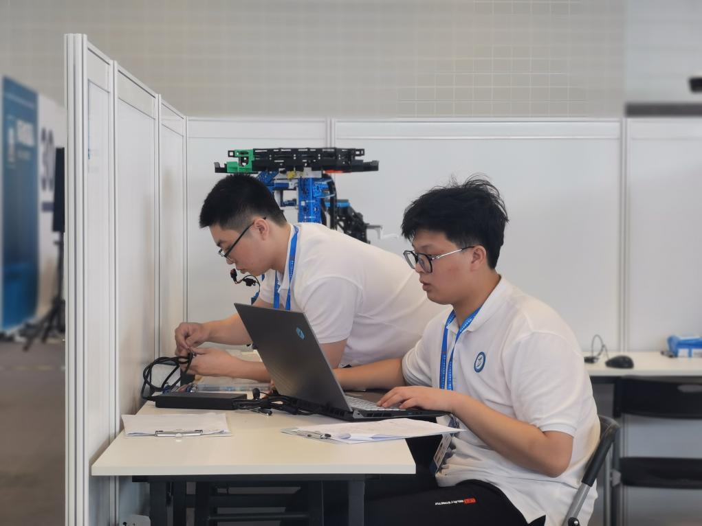 选手参加工业机器人系统操作赛项比赛。新华社记者 刘惟真 摄