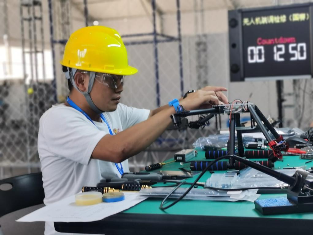选手参加无人机装调检修赛项比赛。新华社记者 刘惟真 摄
