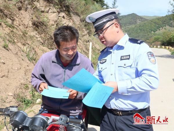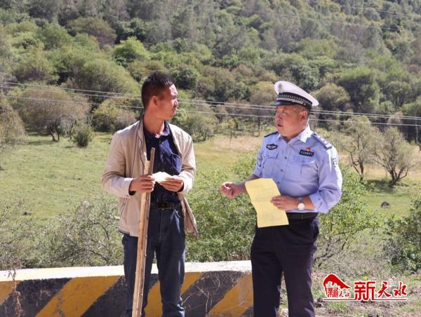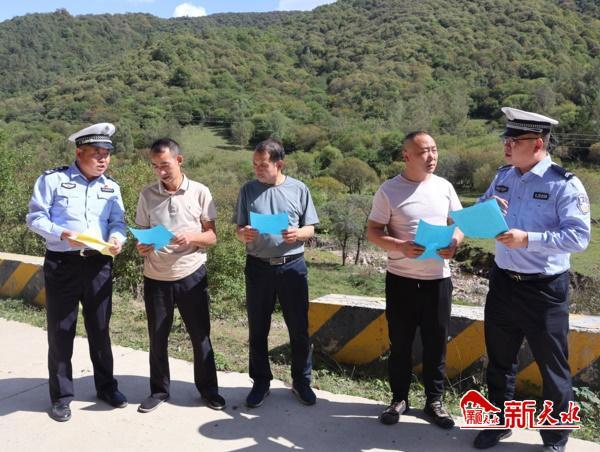 近日,张家川回族自治县公安交警深入辖区马鹿镇关山景区开展“美丽乡村行”“一盔一带”等主题宣传活动。