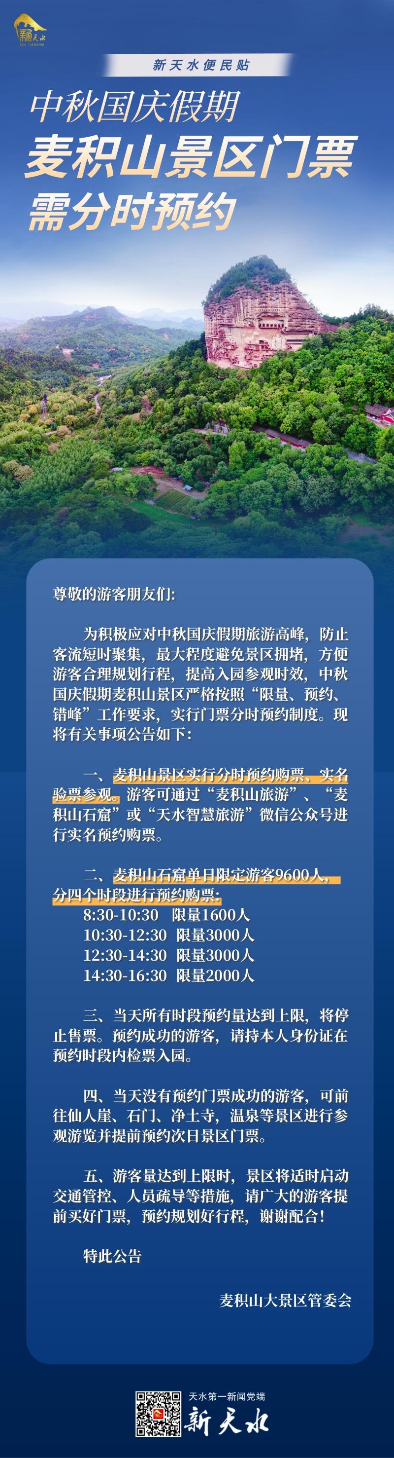 【新天水便民贴】长图 | 中秋国庆假期,麦积山景区门票需分时预约