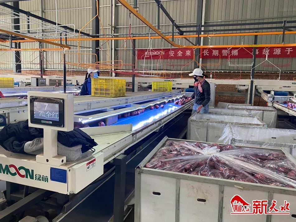 甘谷县佳农果蔬种植农民专业合作社负责人曲义平说:“这个选果线主要是选择外检测和内检测,外检测主要是颜色和伤果、残次果,内检测主要就是糖度,里面果汁有问题的都能检测出来。然后就是级别的检测,像我们这个机器选出来标准量基本上就是80%。”