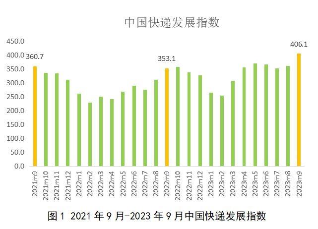 2023年9月中国快递发展指数为406.1 同比提升15%