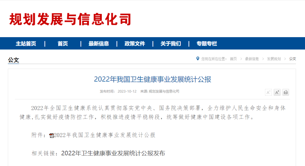 全国卫生人员总数1441.1万人 2022年个人卫生支出占卫生总费用27.0%