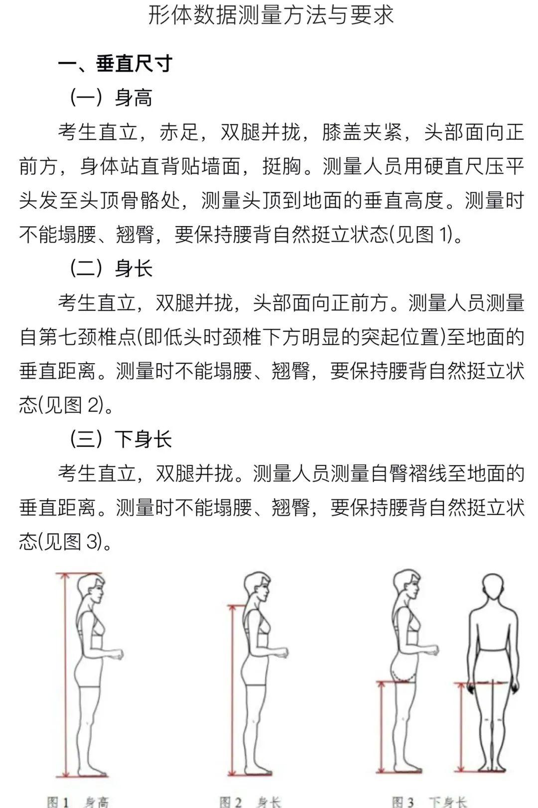 甘肃省普通高等学校招生表(导)演类专业统一考试是由合格的高中毕业生和具有同等学力的考生参加的选拔性考试,是考生进入高校相关专业学习应当具备的基本素质和能力测试,旨在考查考生学习表(导)演类专业应具备的专业基本条件与潜能,其评价结果是高校相关专业招生录取的重要依据。表(导)演类专业省级统考包括戏剧影视表演、服装表演、戏剧影视导演三个方向,其中戏剧影视表演考试适用于表演(戏剧影视表演方向)、戏剧教育、音乐剧等专业,服装表演考试适用于表演(服装表演方向)等专业,戏剧影视导演考试适用于戏剧影视导演等专业。考试包括文学作品朗诵、自选曲目演唱、形体技能展现、命题即兴表演四个科目。总分300分,其中文学作品朗诵100分、自选曲目演唱50分、形体技能展现50分、命题即兴表演100分。考试包括形体形象观测、台步展示、才艺展示三个科目。总分300分,其中形体形象观测150分、台步展示120分、才艺展示30分。考试包括文学作品朗诵、命题即兴表演、叙事性作品写作三个科目。总分300分,其中文学作品朗诵50分、命题即兴表演50分、叙事性作品写作200分。(1)考试目的:主要考查考生对文学作品的理解力、想象力及运用有声语言表达文学作品的能力。(2)考试形式与要求:考生朗诵自选文学作品(现代诗歌、叙事性散文、小说节选、戏剧独白等)一篇,时长不超过3分钟;考生须以普通话脱稿朗诵。(1)考试目的:主要考查考生嗓音条件,对作品的理解、旋律及节奏的把握和表现能力。(2)考试形式与要求:考生演唱自选曲目(歌剧、音乐剧、民歌、流行歌曲等)一首,时长不超过2分钟;考生须无伴奏进行演唱。(1)考试目的:主要考查考生身体的协调性、灵活性、节奏感、艺术表现等能力。(2)考试形式与要求:考生自选形体动作(舞蹈、武术、戏曲身段、艺术体操、广播体操等)一段,时长不超过2分钟;形体服装及伴奏音乐自备。(1)考试目的:主要考查考生在假定情境中组织有机行动的能力、观察生活的能力以及人文综合素养。(2)考试形式与要求:单人,现场抽取考题,稍作准备后进行考试;每人时长不超过3分钟。(1)考试目的:主要考查考生形体比例、肢体的匀称性、协调性及肤质等方面状况,评价考生专业外部条件及形象气质等。(2)考试形式与要求:考生先完成形体测量(测量方法与要求附后),然后5-10位考生为一组进行正面、侧面、背面体态展示:要求赤足、着泳装,其中女生着纯色、分体、不带裙边泳装,男生着纯色泳裤。(1)考试目的:主要考查考生服装表演展示的步态、姿态等基本技巧,形体的表现力、协调性和韵律感,对音乐的理解力及反应能力等方面状况。(2)考试形式与要求:5-10位考生为一组,按序进行台步展示。考生完成行走、转身、造型等台步展示过程,自备服装须大方得体,女生须穿高跟鞋。(1)考试目的:主要考查考生的节奏感、乐感和艺术表现力,评价考生肢体的协调性和灵活性。(2)考试形式与要求:考生先以普通话自我介绍,不可透露姓名等个人基本信息,时长不超过1分钟;然后从舞蹈、健美操、艺术体操等体现肢体动作的才艺中自选一种进行展示,时长不超过2分钟,服装及伴奏音乐自备。注:服装表演方向各科目考试中,考生不可化妆,不得穿丝袜,不得佩戴饰品及美瞳类隐形眼镜,发式须前不遮额、后不及肩、侧不掩耳。1.文学作品朗诵考试相关要求同戏剧影视表演方向文学作品朗诵科目。2.命题即兴表演考试相关要求同戏剧影视表演方向命题即兴表演科目。(1)考试目的:主要考查考生文学创作的立意把握、结构创意与文字组织的综合能力,以及考生在视听表达方面的潜力。(2)考试形式与要求:根据给定命题进行写作,叙事散文、短故事、微小说、微剧等均可;不少于1200字;考试时长150分钟。木孩儿