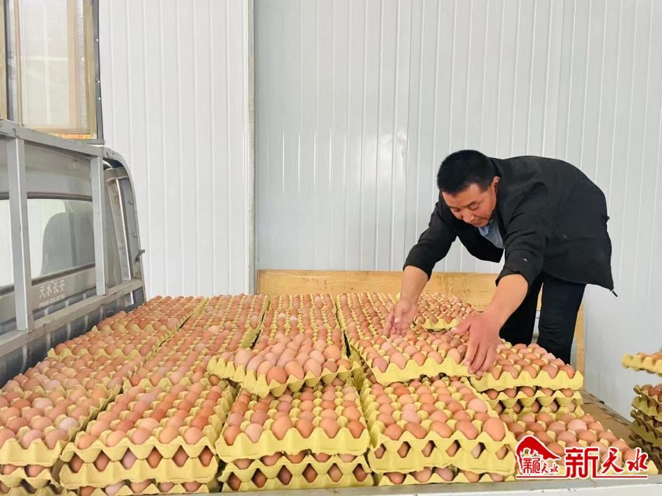 10月22日,走进葛赵村标准化蛋鸡养殖场,现代化鸡笼一字排开,上万只蛋鸡正在进食,务工群众紧密协作,将一筐筐鸡蛋整齐装箱。“2022年,我们通过流转空心院土地,整合闲置非农用地7亩,新建了标准化蛋鸡养殖场。”潘继红向记者介绍道。
