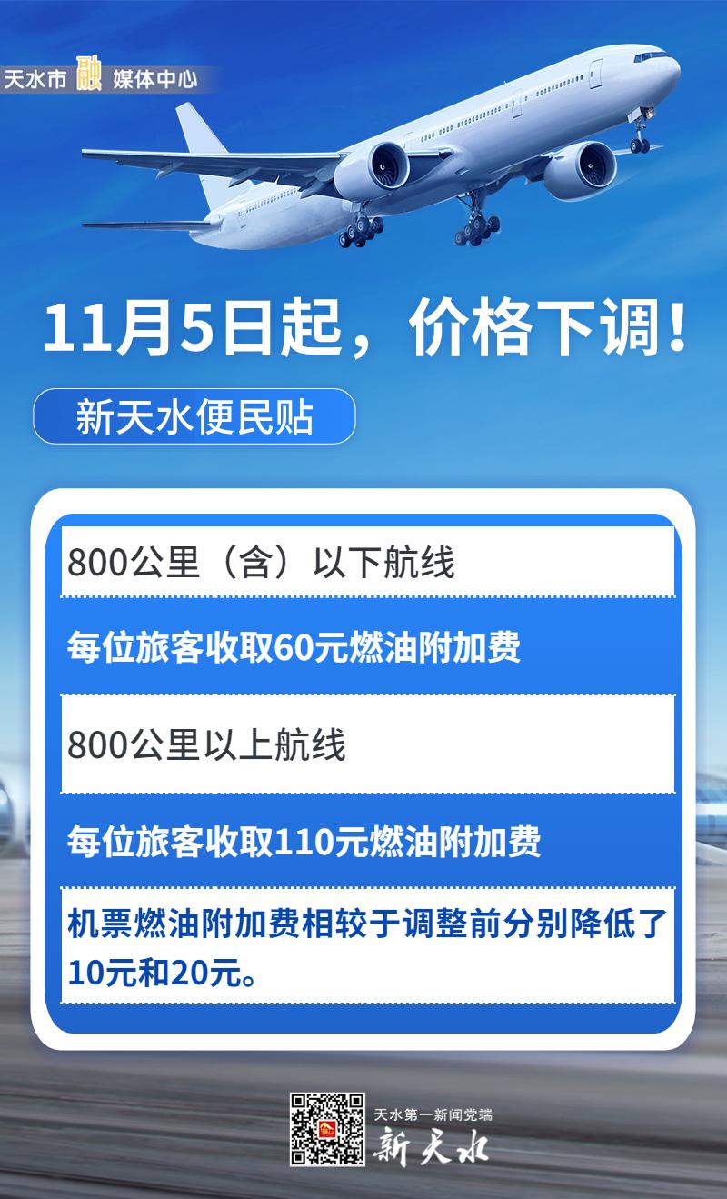 【新天水便民贴】11月5日起,机票燃油附加费下调!