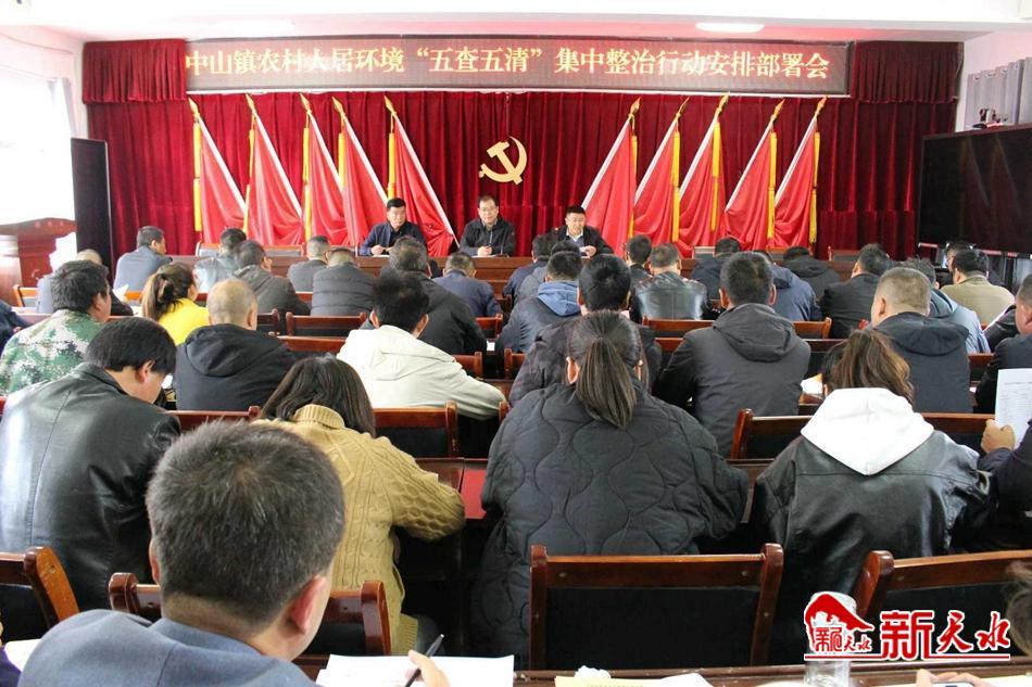 中山镇集中力量开展大清理、大清扫,清除积存垃圾、卫生死角、乱堆乱放,落实“门前三包”,深入推进“清庭院、清垃圾、清河沟、清田园、清道路”五清行动,以“查问题整改、查厕所质量、查产品质量、查资金使用、查明白卡入户”五查为重点,统筹协调户厕改造。