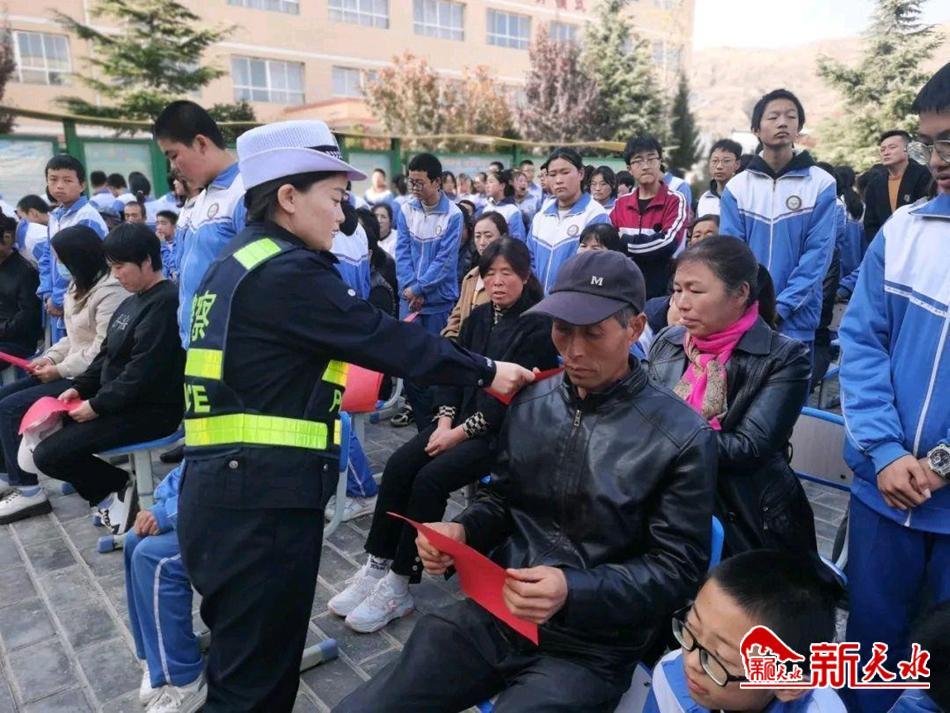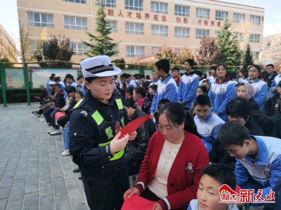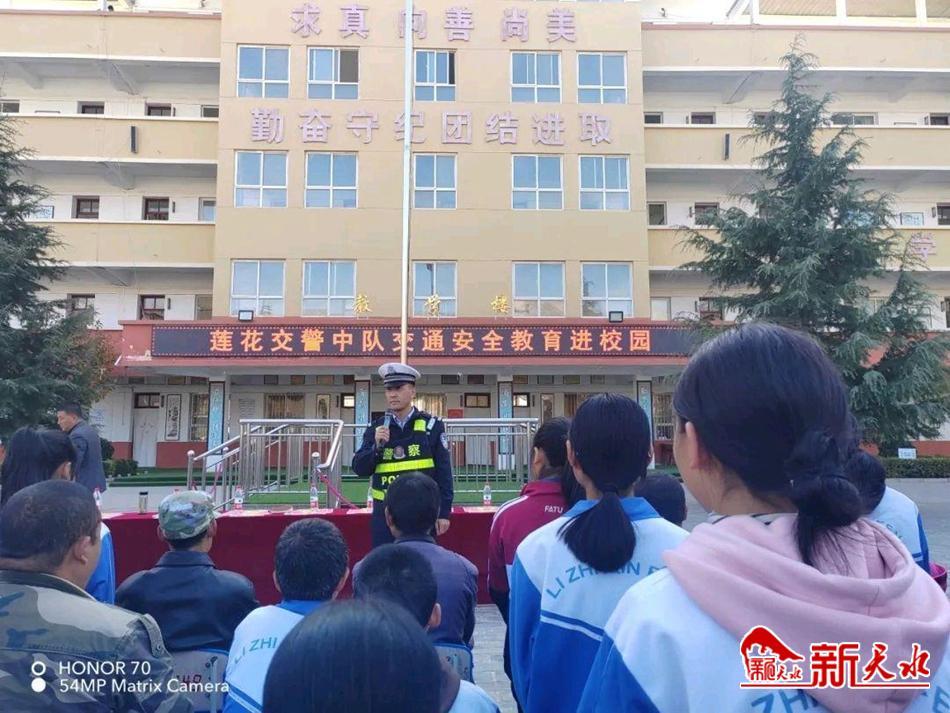 新天水讯 11月3日,秦安县公安局交警大队莲花中队民辅警走进莲花中学开展文明交通安全教育进校园活动。