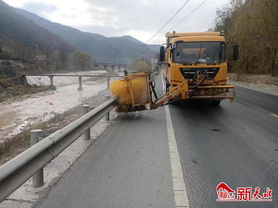 该段加大每日巡查保洁力度,采取人工+机械清扫相结合的方法,及时清扫路面抛撒物、沙子和枯枝落叶。在村镇重点路段加派养护人工,增加保洁频率,确保路面干净。强化对桥隧涵及附属设施安全隐患的排查,对损坏的标志标牌及时进行维修更换。利用人工+吹路机清理的方式,对边沟、路肩边坡的枯枝杂草进行清理 ,清理疏通公路边沟和排水沟,保持排水通畅。