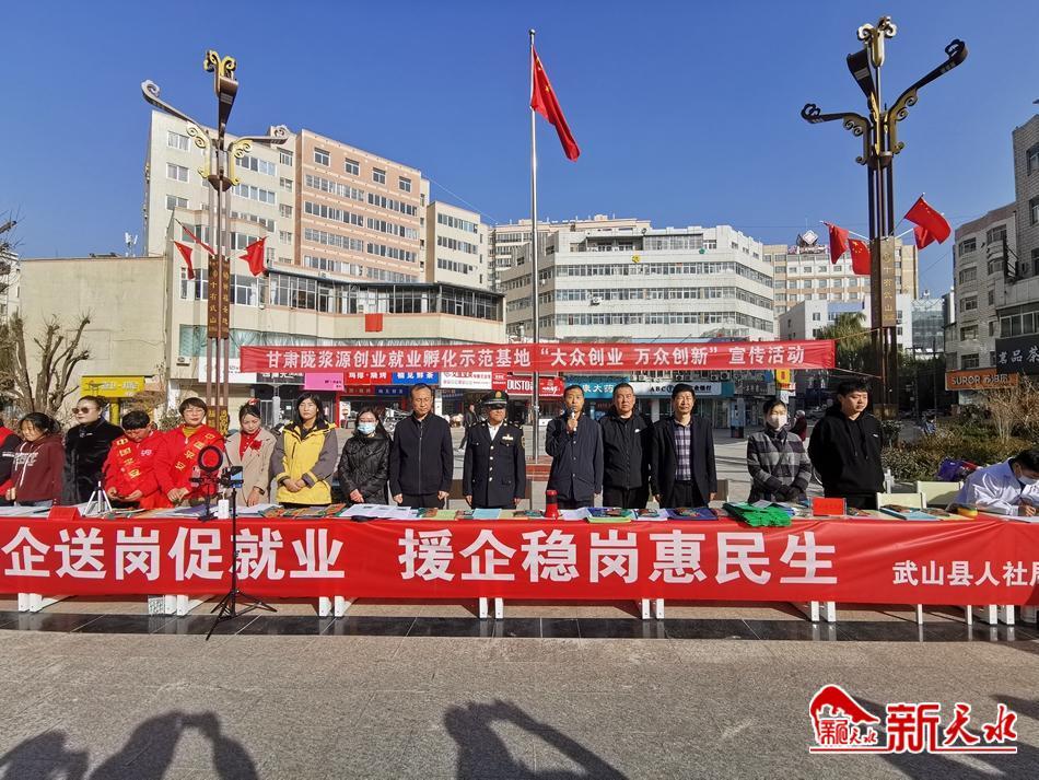 新天水讯【通讯员董世雄 王越】11月24日,武山县人社局联合甘肃陇浆源创业就业孵化基地和县内各相关部门、企业开展“携企送岗促就业·援企稳岗惠民生”就业宣传活动。