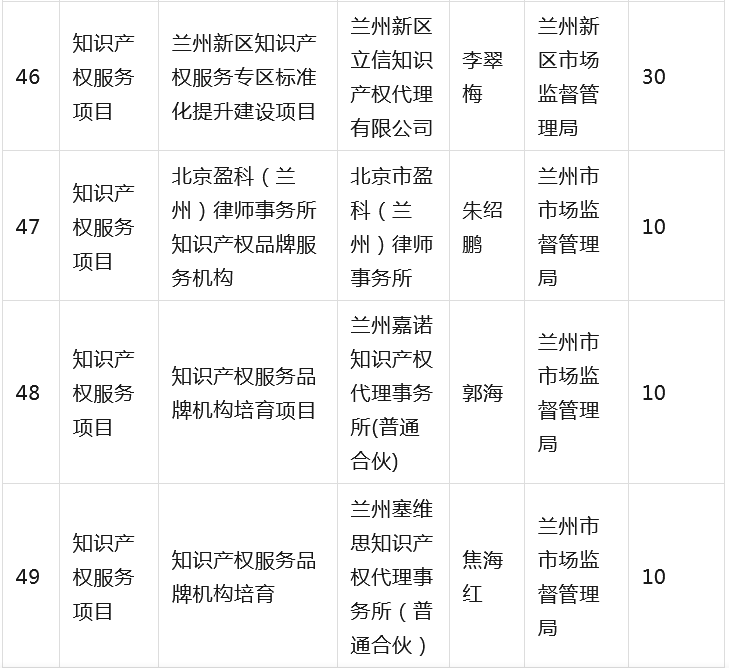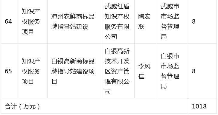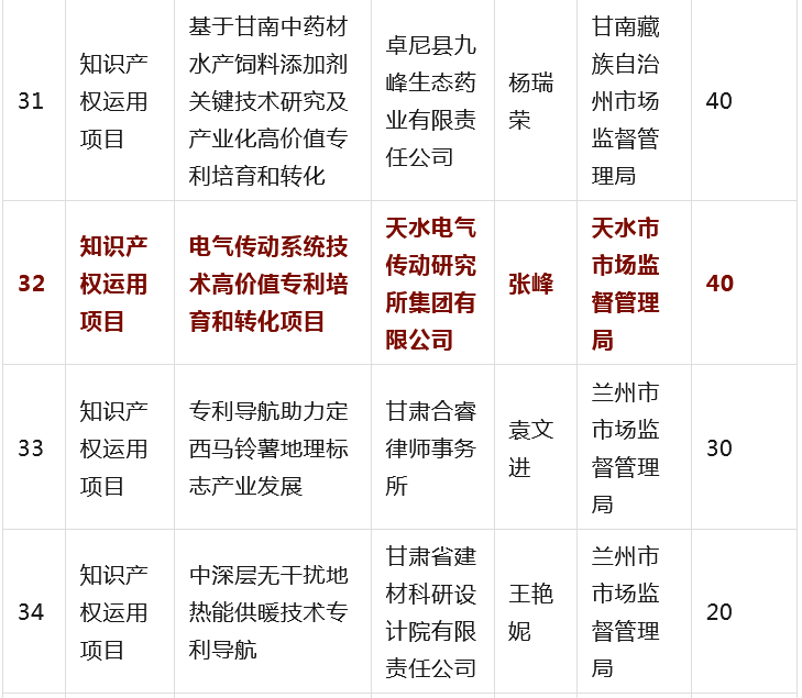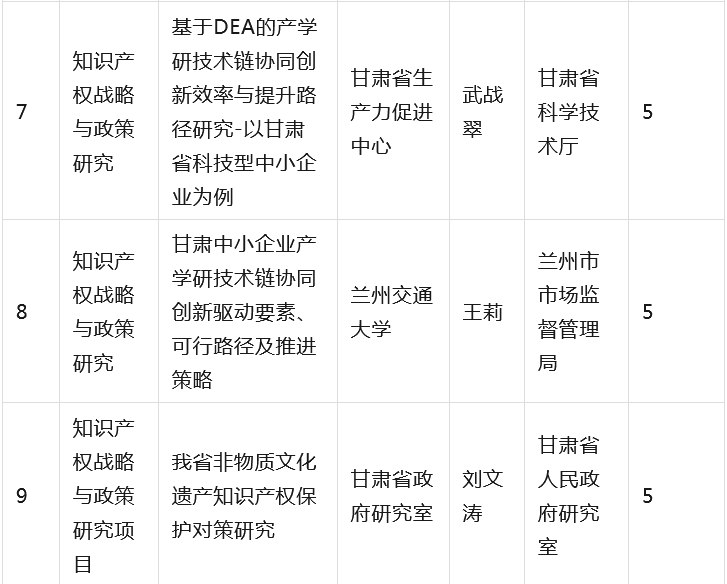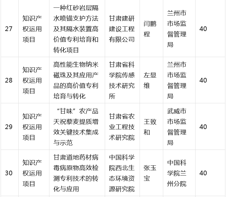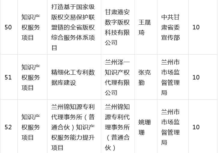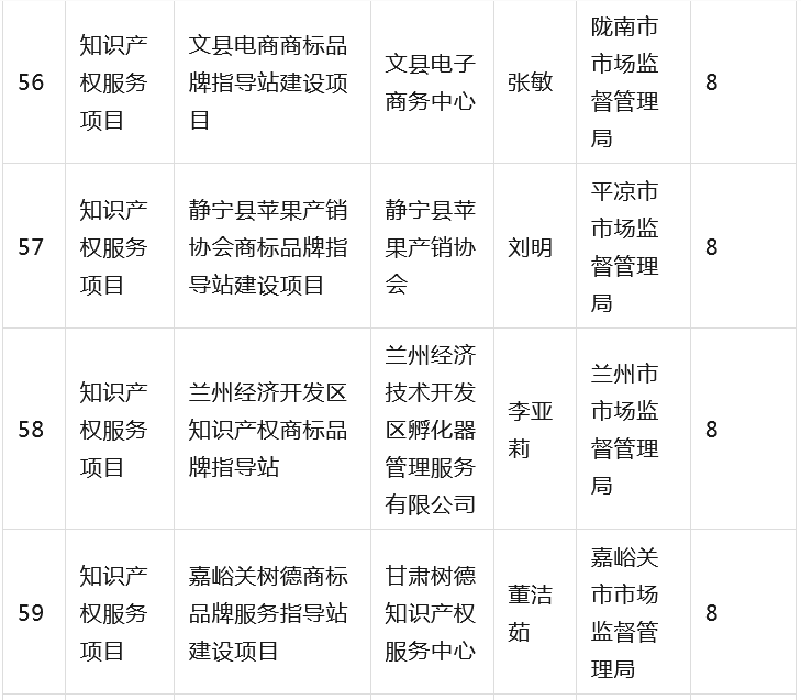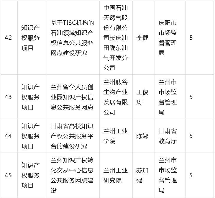 为全面贯彻落实省委省政府有关知识产权工作的决策部署,深入推进知识产权强省建设,根据《甘肃省知识产权计划项目管理办法》《甘肃省知识产权计划项目公开公示办法》等有关规定,省市场监管局组织开展2023年度甘肃省知识产权计划项目工作,经公开征集申报、市(州)初审推荐、专家综合评审、现场核验等程序,提出了《2023年度省级知识产权计划(公开征集)项目拟立项名单》,并经省局第31次党组(扩大)会议审议通过,现予以公示(名单见附件),欢迎社会各界监督。