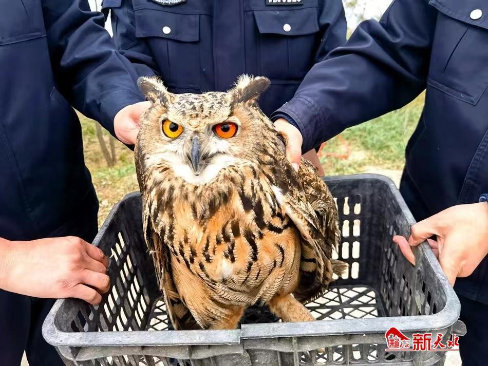 国家二级保护动物雕鸮误入农田 武山公安及时救助并放生