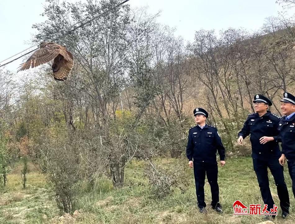 新天水讯【记者 王莹 通讯员 管倩倩】 日前,一只国家二级保护动物——雕鸮误入农田,在武山县公安局森林警察大队与洛门派出所的救助下,雕鸮被带到野外山林并得到妥善放生。