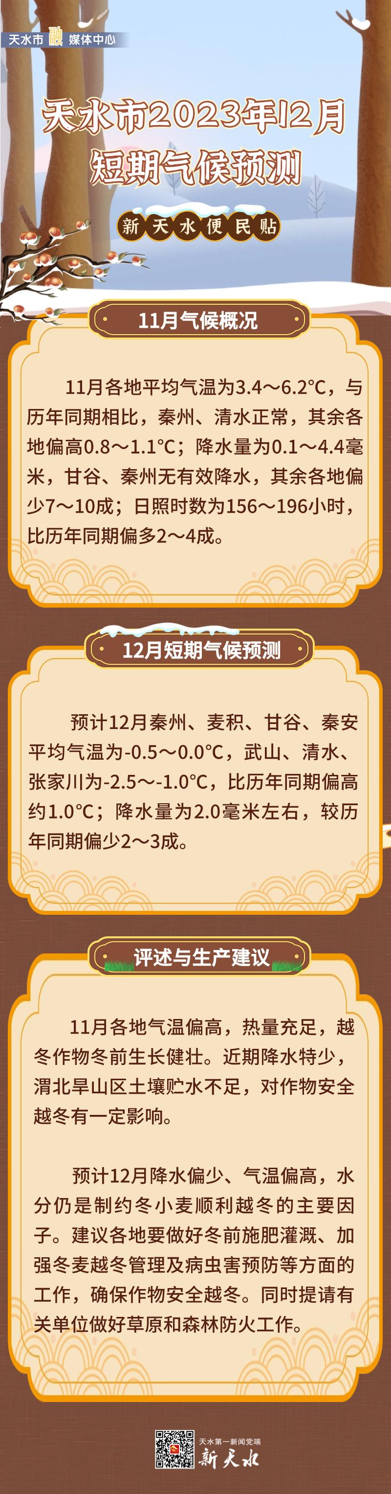 【新天水便民贴】温高雨少!天水市12月气候预测来了!