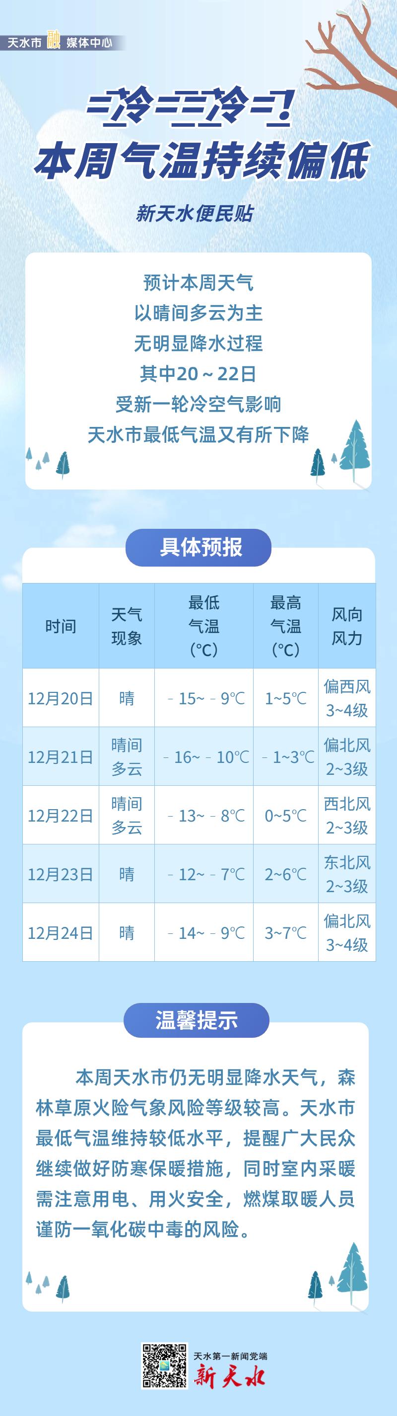 【新天水便民贴】冷冷冷!本周天水气温持续偏低