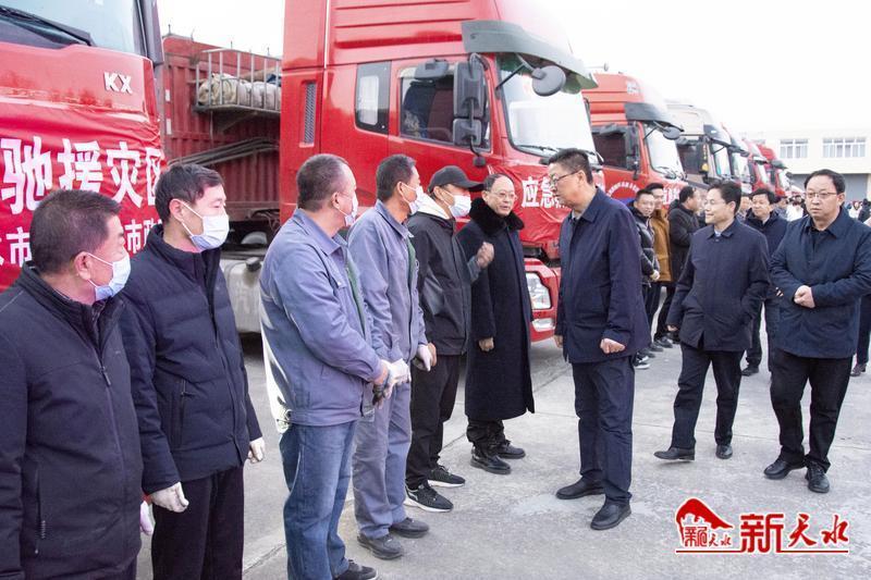市委书记冯文戈,市委副书记、市长王国先,市委常委、秘书长张庆利,市委常委、副市长张宇晶,市政府秘书长黎映广看望并慰问调运物资干部职工。市委副书记杨晓锋跟随车队前往灾区。