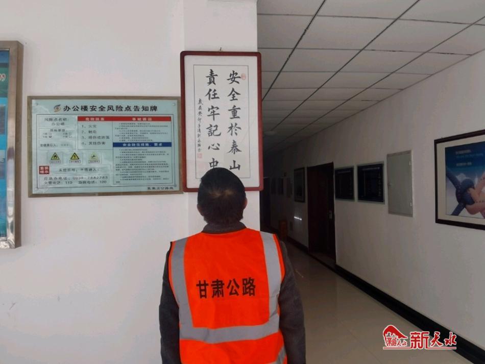 新天水讯【通讯员王小强】生命至高无上,安全责任为天。12月19日,笔者步入张家川公路段张家川养护站的办公楼,一条条醒目的安全标语和一幅幅安全书法作品映入眼帘,这一切无不时刻提醒职工安全作业的重要性,让其深思安全工作是否到位。