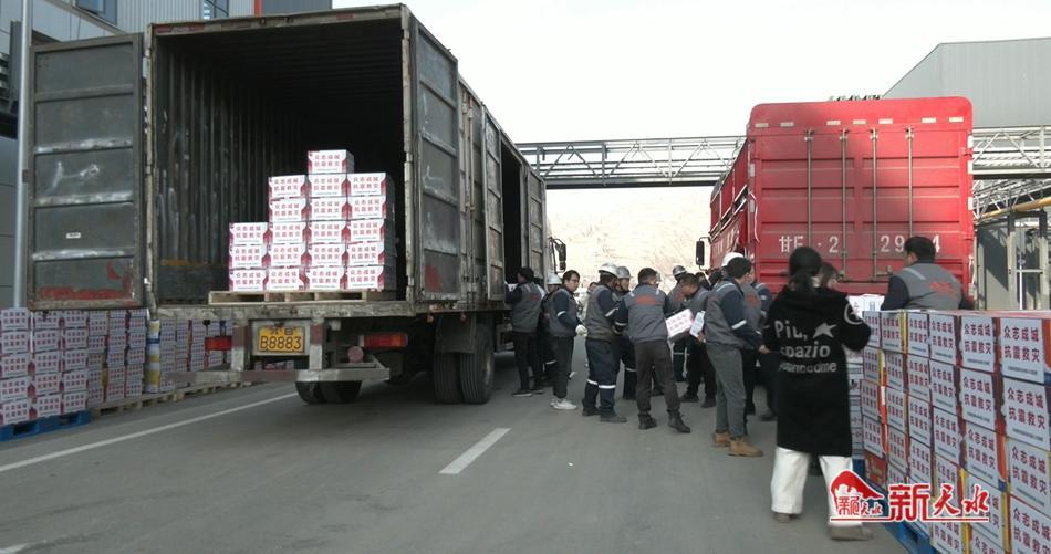 12月20日上午,30余名甘谷县青年志愿者协会的志愿者将筹集到的救灾物资统一装车后运往灾区,帮助受灾群众渡过难关。
