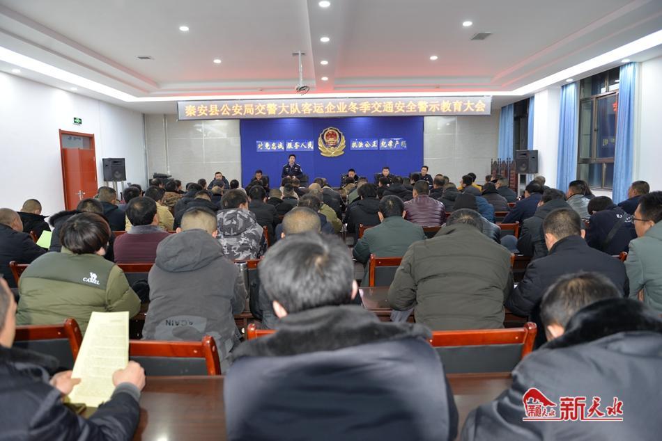 新天水讯 12月25日,秦安县公安局交警大队联合县交通运输局召开客运企业冬季交通安全警示教育大会,亘达公交集团100余名驾驶员参加会议 。