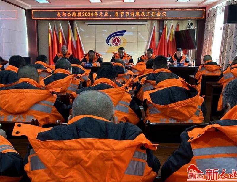 又讯 12月29日,麦积公路段召开元旦前廉政警示教育工作会议。传达学习了中共中央纪委印发《关于做好2024年元旦春节期间正风肃纪工作的通知》、甘肃省“两办”印发《关于做好2024年元旦春节期间有关工作的通知》。