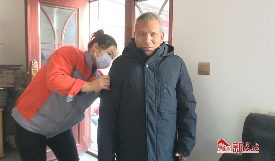 张吉换是秦州区太京镇田家庄村的一名特困人员,领到新棉衣后,他便迫不及待地穿起来了。“感觉很合适,穿上也感觉舒服。”张吉换说。