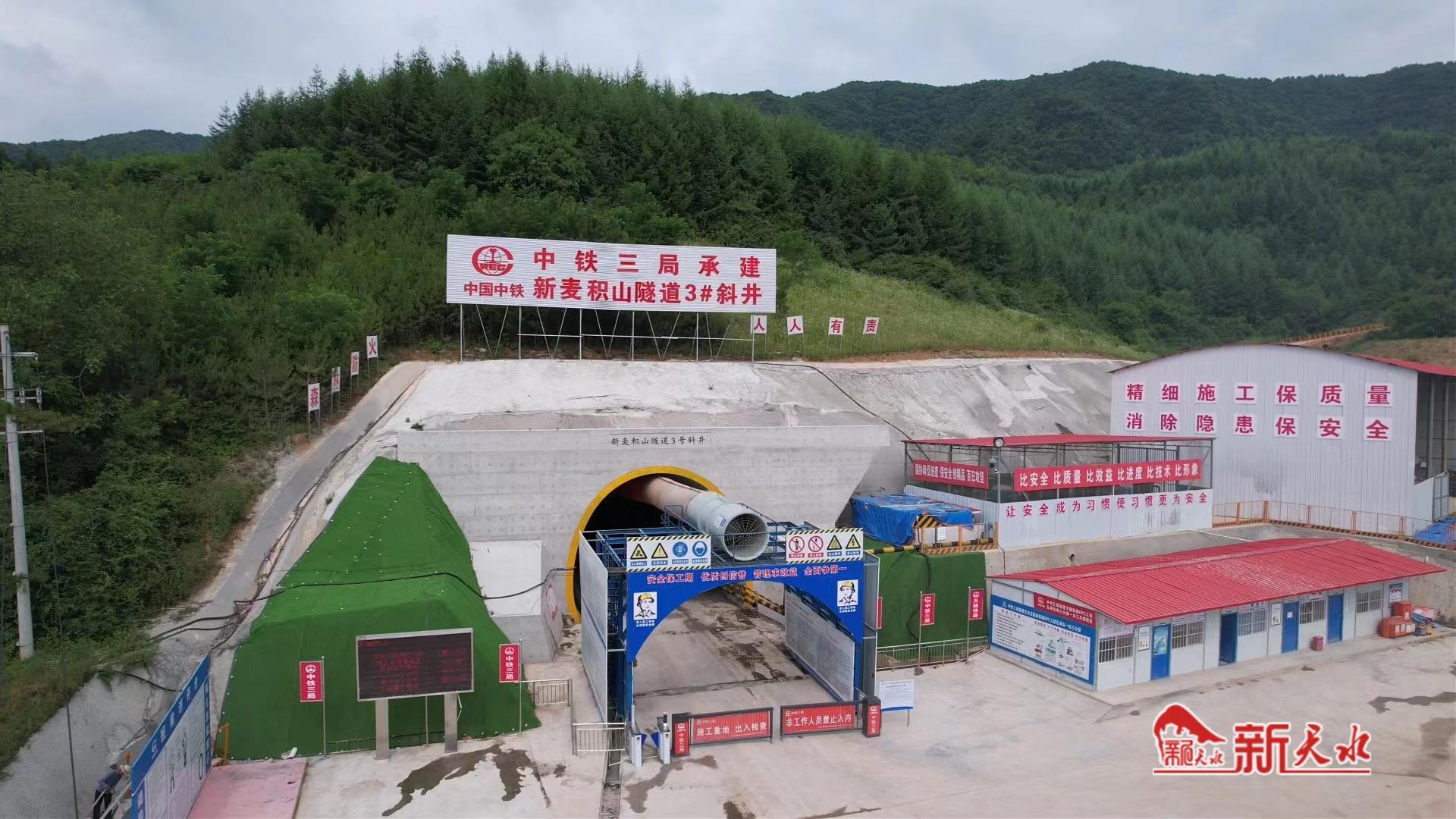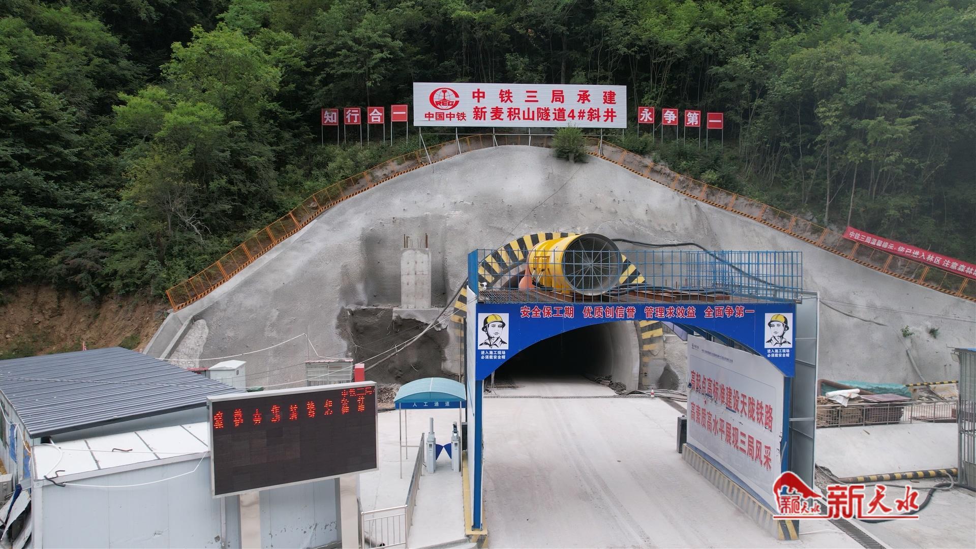 天陇铁路新麦积山隧道全长19818米的,其进口位于麦积区甘泉镇胡家沟北侧一缓坡上,出口位于秦州区娘娘坝镇李子村北侧一缓坡上,为单洞单线隧道,最大埋深约747米,最浅埋深约12米。隧道工程分别由三个分部负责施工,其中中铁三局天陇铁路Ⅰ标三分部承担着正洞总长10466.86米的施工任务,占新麦积山隧道全长的52.82%。此次掘进突破2000米的3号斜井长度为2605米、4号斜井长度为2568米。