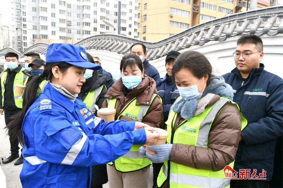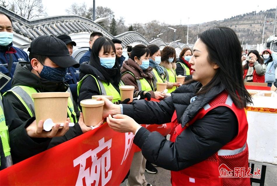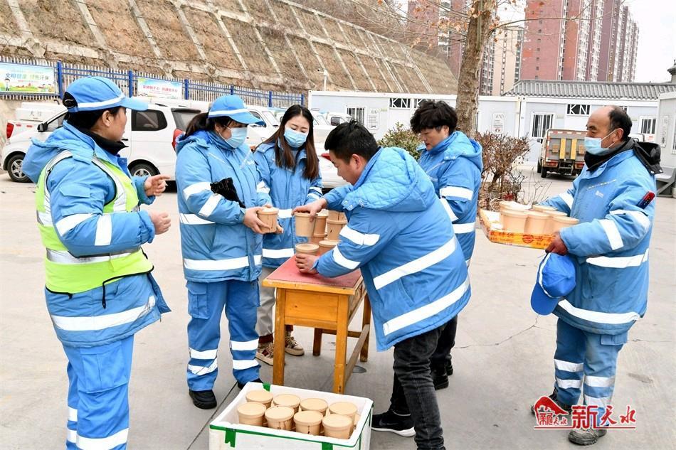 新天水讯【特约通讯员窦耀辉 通讯员窦艺】浓情腊八节,情暖环卫工。1月18日是农历腊月初八,中国传统的腊八节,民进麦积区委员会联合麦积区环卫中心开展“一碗腊八粥 温暖一座城”爱心公益活动,将800份爱心腊八粥送到一线环卫工人手中,一碗碗爱心腊八粥在天寒地冻中传递,温暖了整个麦积城,激发了广大环卫工人立足本职,以实际行动扮靓幸福美好新麦积的热情。